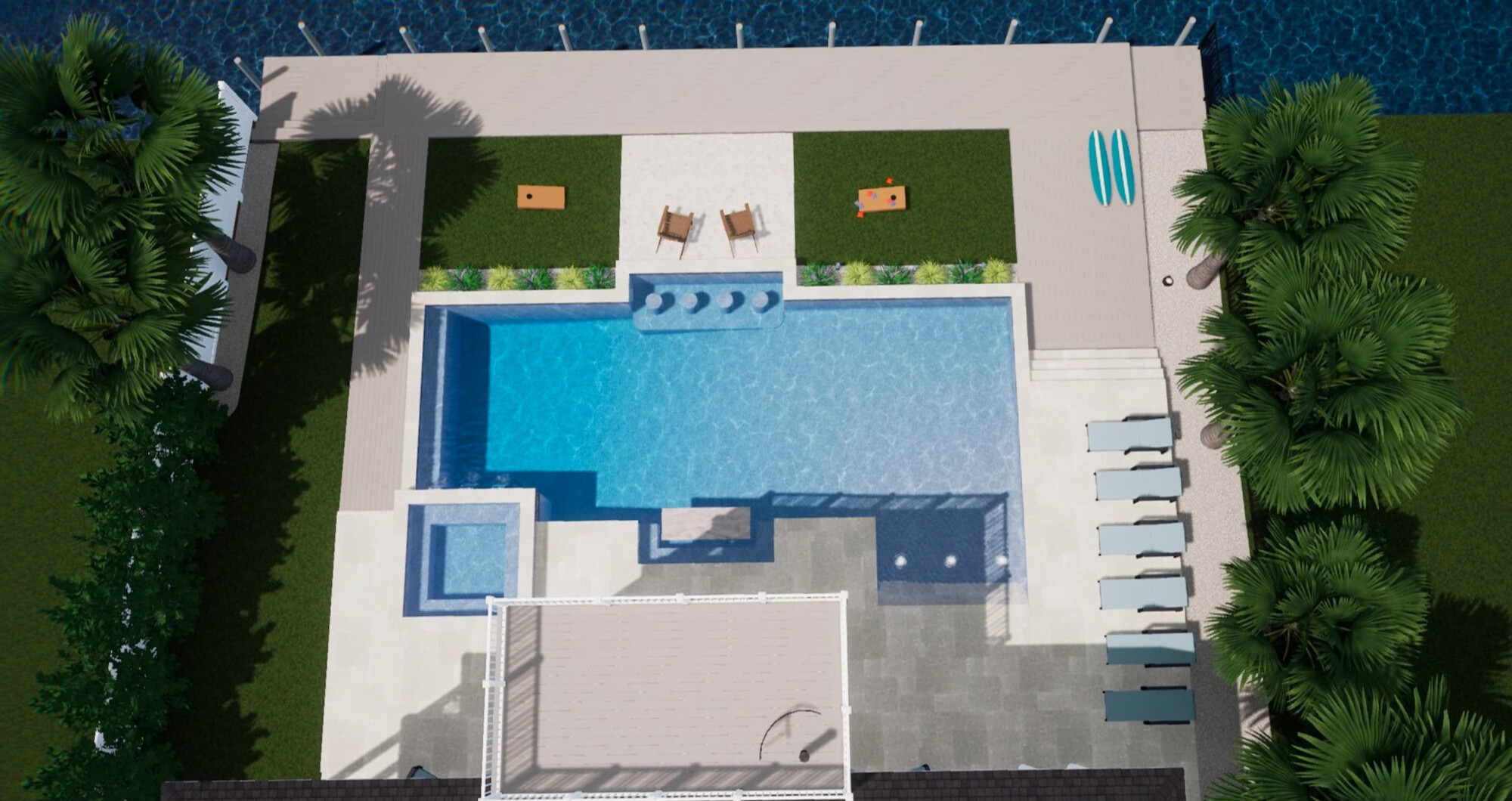 - In-Pool Seating Area – Lounge seating for relaxing